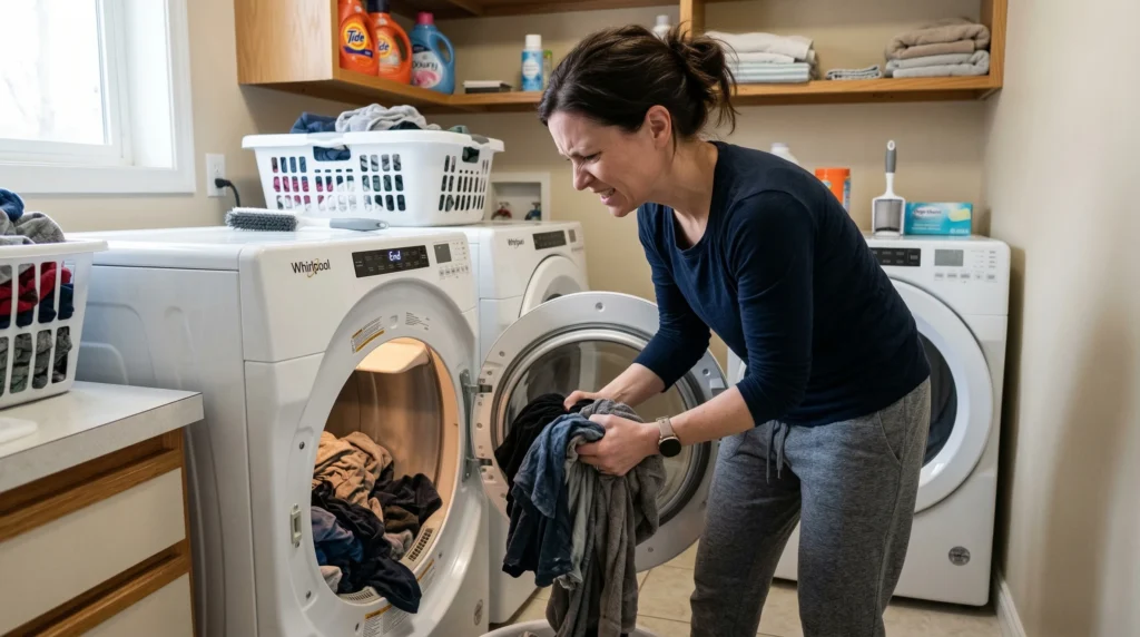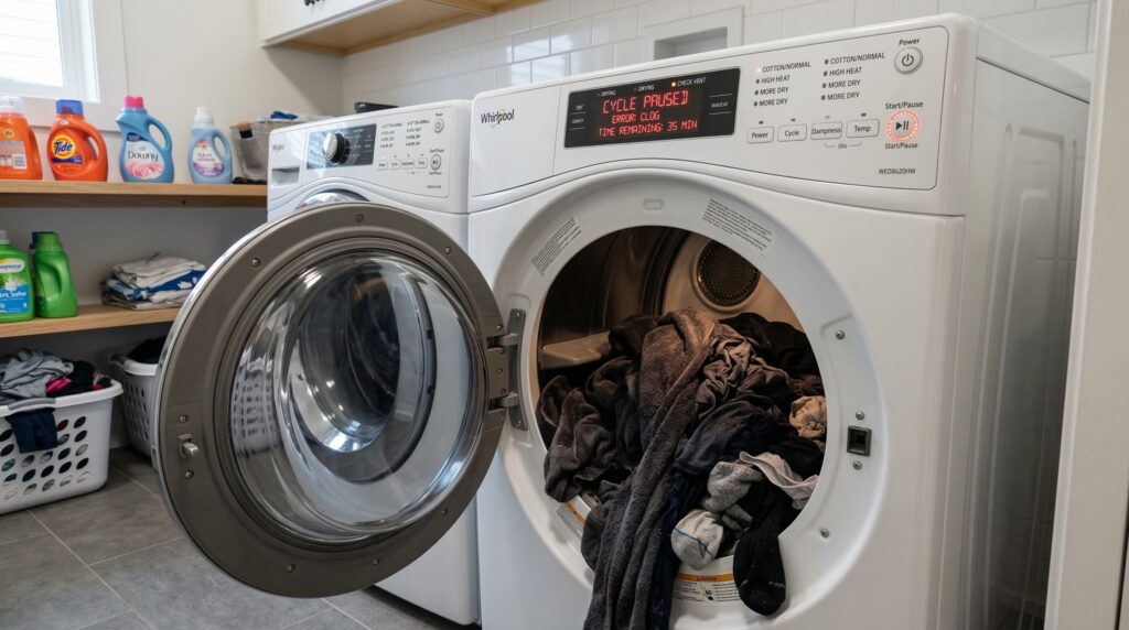 Your dryer runs a full cycle but the clothes feel damp and cold. You restart and wait again. A blocked vent traps moist air inside. Your laundry day stretches longer than it should.