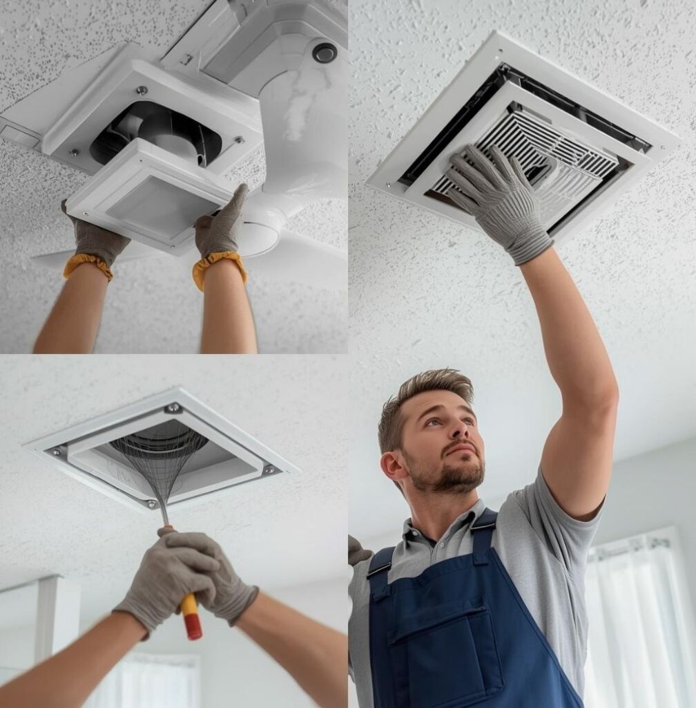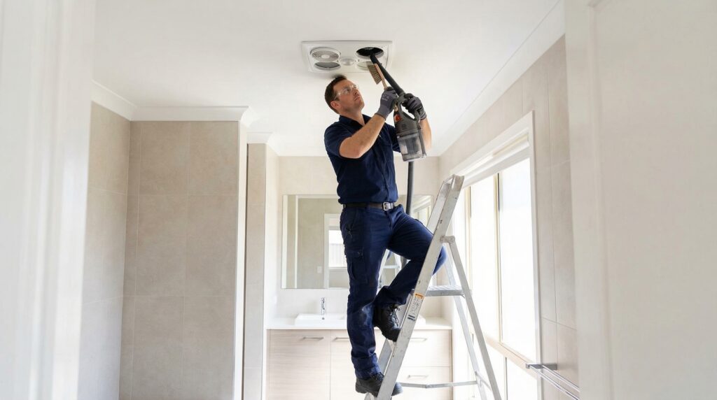 • We Clean Bathroom Exhaust Fans: We remove the grille and fan assembly. We wash blades and motor housing. We vacuum the duct opening. You get strong airflow again.